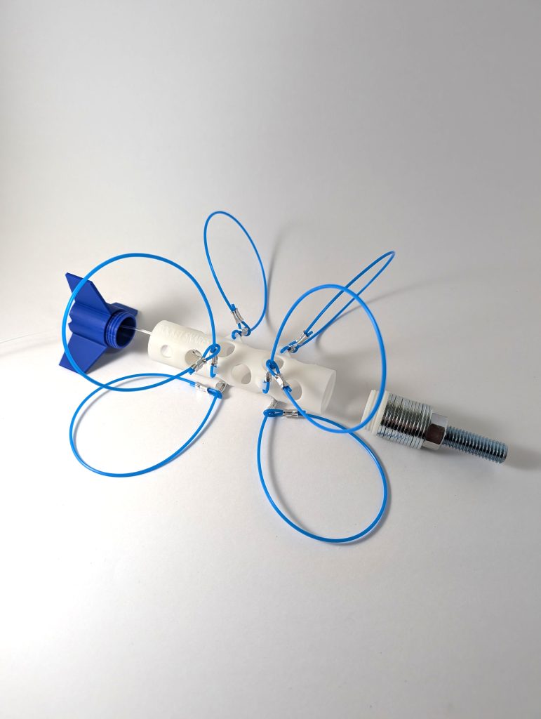 The weights are adjustable, removable, and replaceable. The tail fin piece is removable and replaceable. The tail, nose, and bolt threads offer flexible anchor points for future features.
