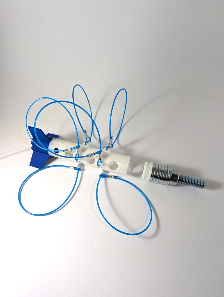 The front-loaded weight distribution and engineered fin design optimize the Magister rocket’s static margin to ensure stable flight.